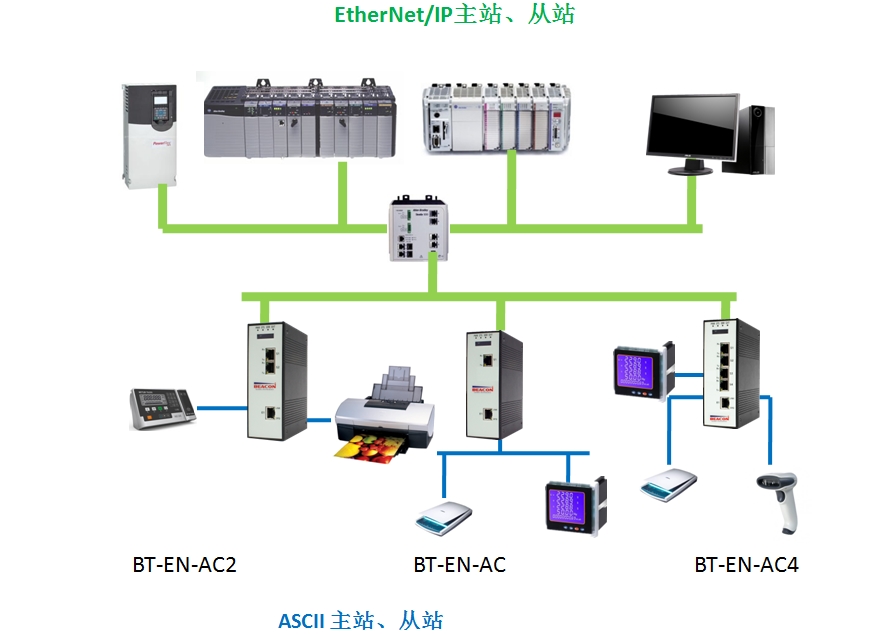 Beacon Global Technology的新型 EtherNet/IP®-ASCII串行通讯网关模块BT-EN-AC,支持在EtherNet/IP和ASCII串行网络中的设备之间的双向数据交换,其中EtherNet/ IP驱动程序全部使用Class 1的I/O连接,最大支持4个连接,最大4,000个字节数据交换区。