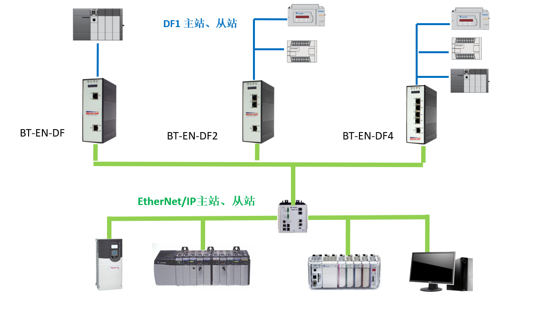 Global Technology的新型EtherNet/IP®-DF1通讯网关模块BT-EN-DF系列产品,支持多种设备在EtherNet/IP和DF1网络中的数据交换,最大支持8,000个字节数据交换区。