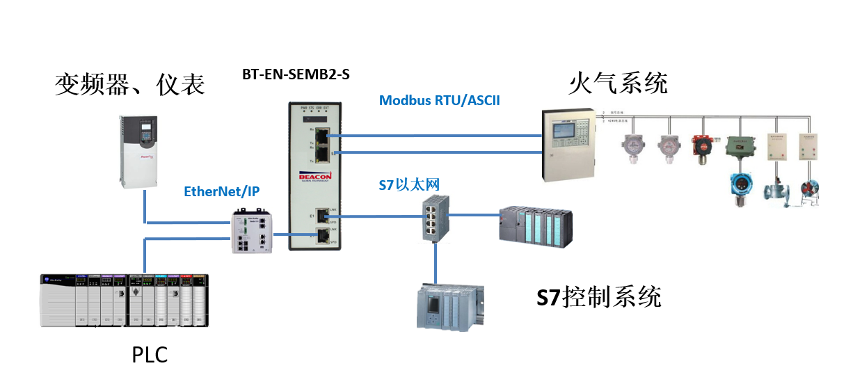 Beacon Global Technology的新型EtherNet/IP®-S7以太网-Modbus Serial通讯网关模块BT-EN-SEMB2,支持多种设备在EtherNet/IP、 西门子S7以太网以及Modbus RTU/ASCII网络中的数据交换,最大支持20,000个字节数据交换区。