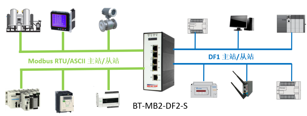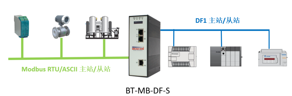 Beacon Global Technology的新型Modbus RTU-DF1通讯网关模块BT-MB-DF系列产品,支持多种设备在Modbus和DF1网络中的数据交换,最大支持8,000个字节数据交换区。