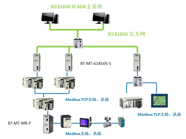 作为从站(RTU、IED)连接IEC61850 SCADA主站系统 |