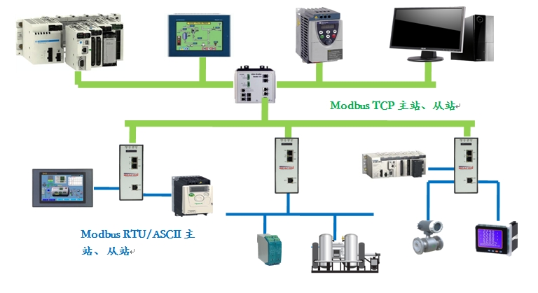 可以提供1,2,4个RS-232/422/485 Modbus RTU串行通信端口,每个端口可以根据要求配置成Modbus主站或者从站。每个主站最大支持128条Modbus指令。
