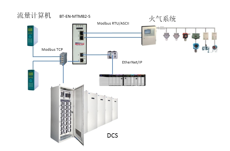 经过多次的考证,系统集成商最后采纳了BEACON提供的通讯模块方案BT-EN-MTMB2。该模块可以同时支持EtherNet/IP和1756 PLC通讯,支持Modbus TCP和流量计算机和DCS通讯,支持2路Modbus RTU和火气系统通讯。